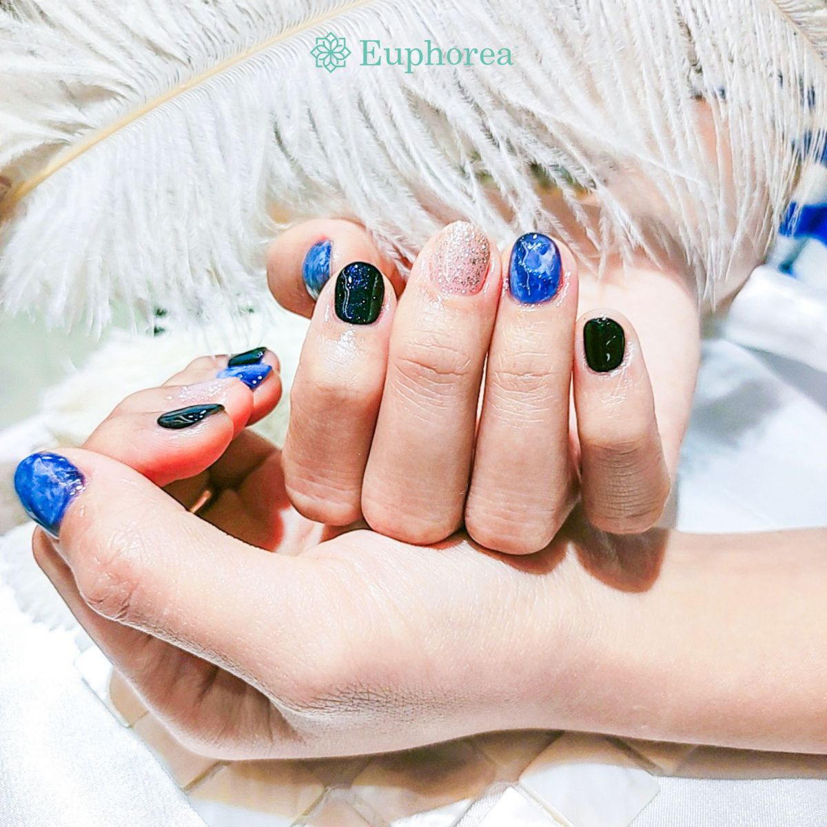 Dù bạn chọn xanh baby, xanh nhạt, xanh coban hay xanh lam, những mẫu móng tay xanh dương là một luồng gió mới trong những ngày hè nóng bức. Về việc thiết kế móng tay màu xanh nào trong những tuần và tháng tới, chuyên gia làm móng Mazz Hanna, Giám đốc điều hành của Nailing Hollywood, cho biết rằng bạn không thể lầm những họa tiết xoáy, hoa, hình mắt quỷ, hiệu ứng aura, điểm nhấn bằng chrome và kết hợp nghệ thuật móng.